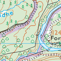 ➑️ Anticlockwise circuit. Start – Abhainn Deabhag near Plodda Lodge – Plodda Falls – start. Route waymarked in green & on map πŸ”— here (Tweedmouth Trail)