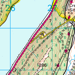 ⬀ Tough | Wide forestry tracks then steep and rough hill path for ascent which may require hands right at the start, and boggy in places. Descent to Cowal Way on intermittent grassy trods, then good path and track down Coilessan Glen. Minor road then woodland paths for return stretch.